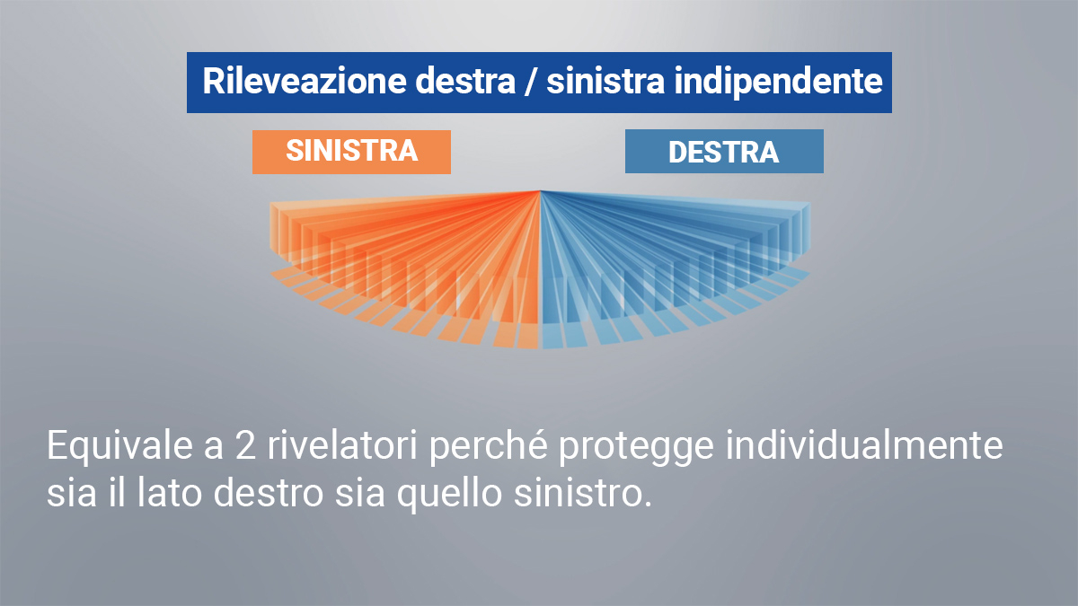 La logica SMDA (Super Multidimensional Analysis) di SQUARE180 rappresenta un salto in avanti nella tecnologia di rilevazione. Questo sistema intelligente analizza i movimenti in modo dettagliato, distinguendo tra disturbi ambientali e reali minacce. Di conseguenza, riduce drasticamente i falsi allarmi, permettendoti di reagire solo quando è veramente necessario. La logica SMDA adatta inoltre il sensore alle condizioni ambientali variabili, garantendo prestazioni ottimali in qualsiasi situazione climatica.