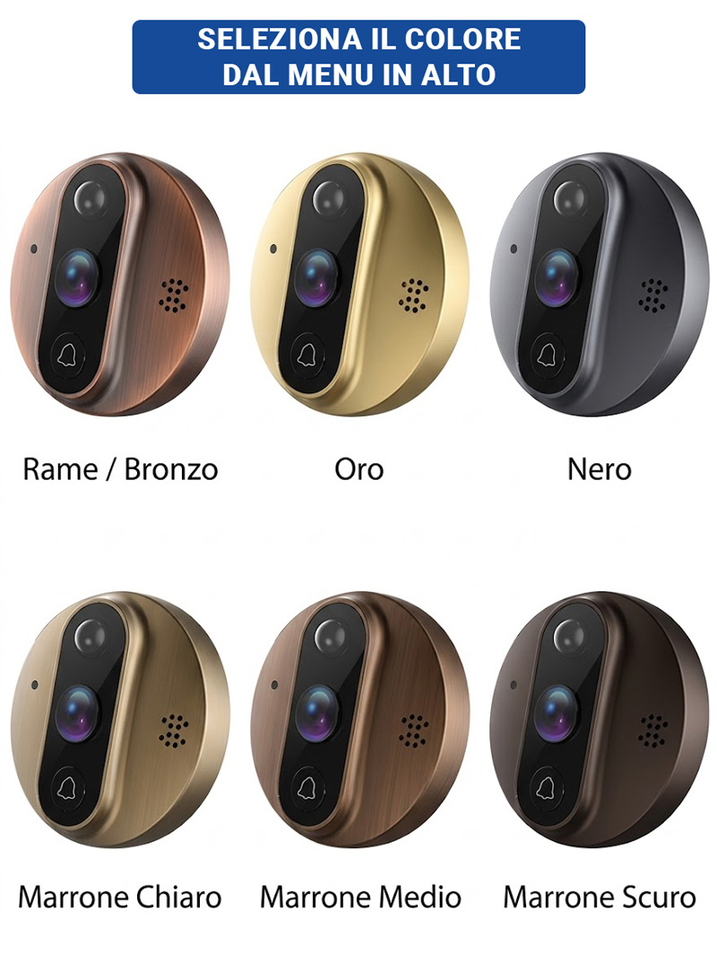 Spioncino Digitale smart a batteria con display LCD, Audio bidirezionale, campanello, visione notturna e APP