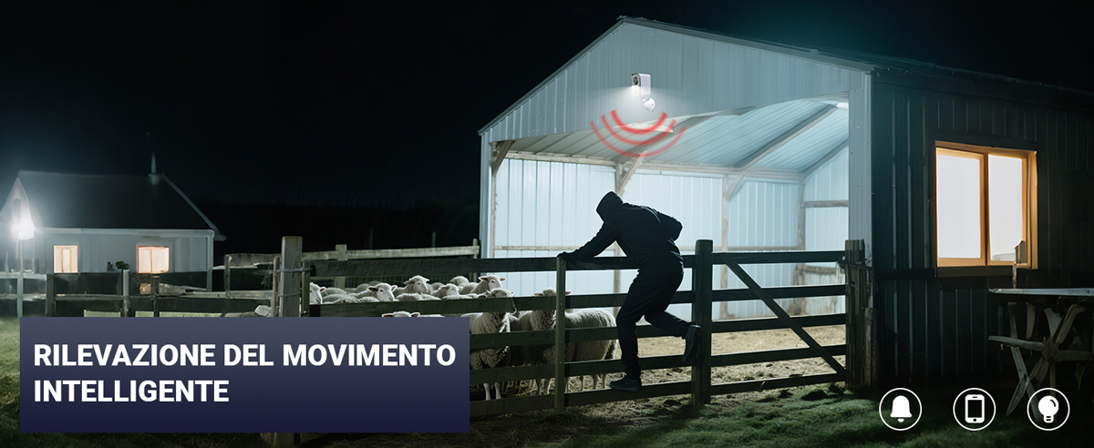Sensore di movimento, con sensibilità regolabile, che permette di far pervenire avvisi in tempo reale (immagini e video) direttamente sul tuo smartphone. Obiettivo con angolo visuale molto ampio.