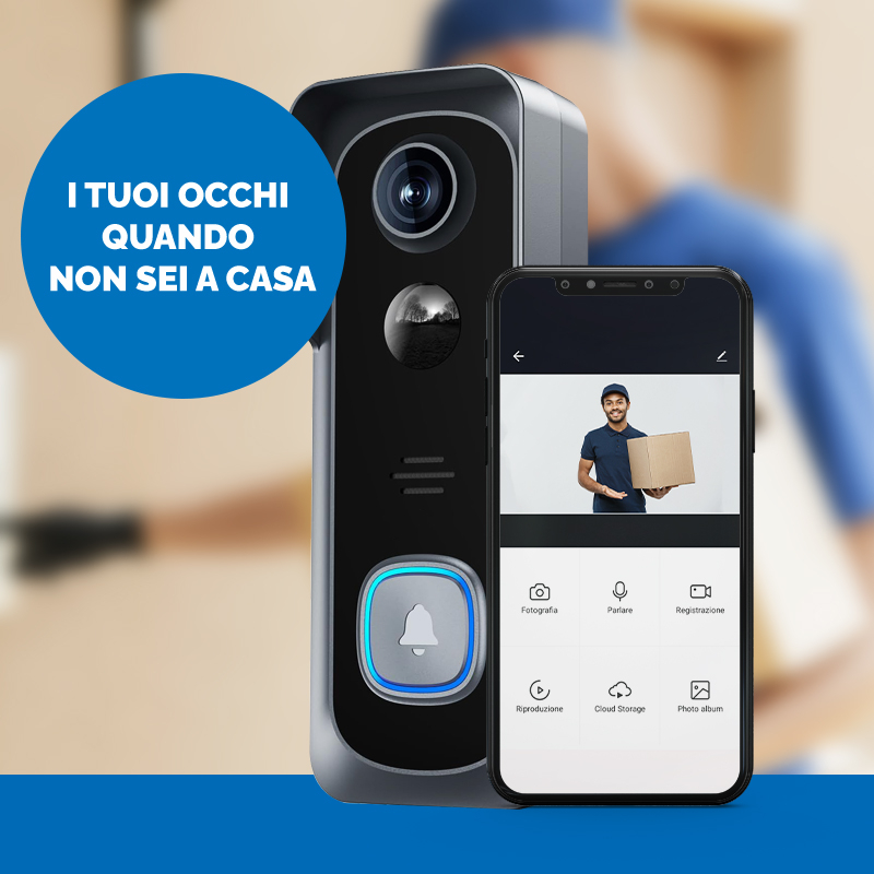 Videocifofono SMART 100% senza filo, gestibile da APP con audio bidirezionale e visione in FULL HD anche in ambienti completamente bui. Integrabile con Alexa, Google HOME ed altri assistenti virtuali, molto semplice da installare senza l'ausilio di tecnici specializzati e senza dover effettuare opere murarie. Video citofono economico ma professionale, universale, adatto per installazioni fai da te in appartamenti, ville, case, condomini. La nostra miglior soluzione smart in sostituzione dei tradizionali campanelli e citofoni.