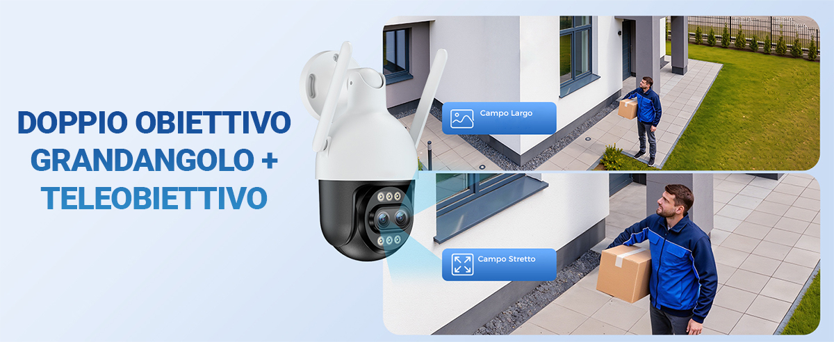 Una delle caratteristiche distintive di questo modello è lo zoom ottico 6x (ibrido 10x), che permette di avvicinarsi al soggetto senza perdere qualità, rendendo facile identificare anche i dettagli più lontani. La telecamera è progettata per rilevare automaticamente persone, veicoli e animali, grazie al suo sistema di rilevamento intelligente, riducendo al minimo i falsi allarmi.