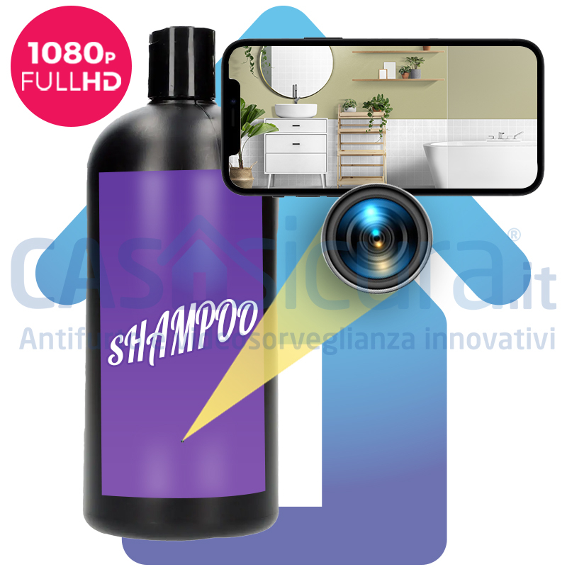 La nostra miglior telecamera spia a forma di bottiglia / vaso spia / porta lettere spy / bagno schiuma spia, 100% senza filo, a lunga autonomia (sino a 6 mesi). Adatta anche per l'installazione all'ESTERNO (sotto le intemperie). Spy camera wi-fi a forma di una comunissima bottiglia, ad alta risoluzione Full HD 1080p. Dal prezzo economico ma da prestazioni da prodotto professionale.